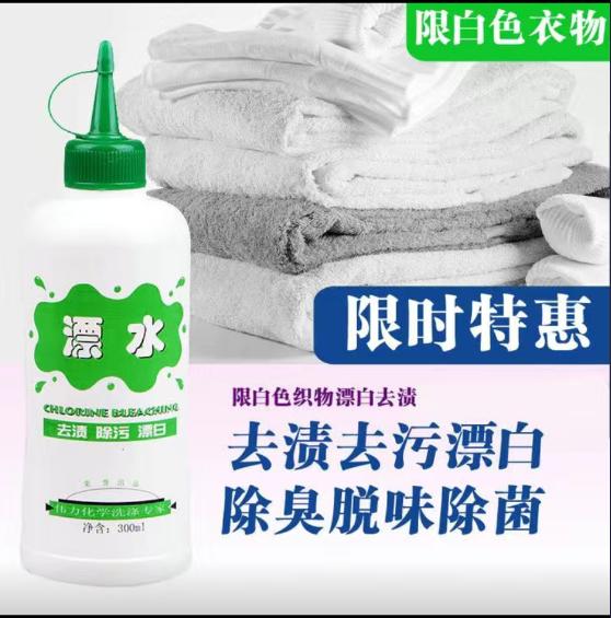 本品由高(gāo)效漂白(bái)氧化(huà)劑(次氯酸鈉溶液)、表面活性劑、穩定劑等配制(zhì)而成。可(kě)有(yǒu)效漂除白(bái)色棉、滌織物(wù)上(shàng)的(de)頑固污漬,如(rú):果汁、醬油、咖啡、茶、藍(lán)墨水(shuǐ)、葡萄酒、汗漬、血漬等。并具有(yǒu)洗滌、滅菌、除臭功效。